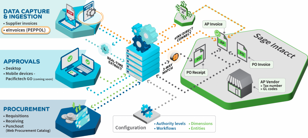 PACIFICTECH eINVOICING FOR SAGE INTACCT MAKES THE EXCHANGING OF INVOICES BETWEEN BUSINESSES MORE EFFICIENT, REDUCES ERRORS, SIGNIFICANTLY LOWERS ADMINISTRATIVE COSTS AND MOST SIGNIFICANTLY - IS MORE SECURE REDUCING THE RISK OF FRAUD.